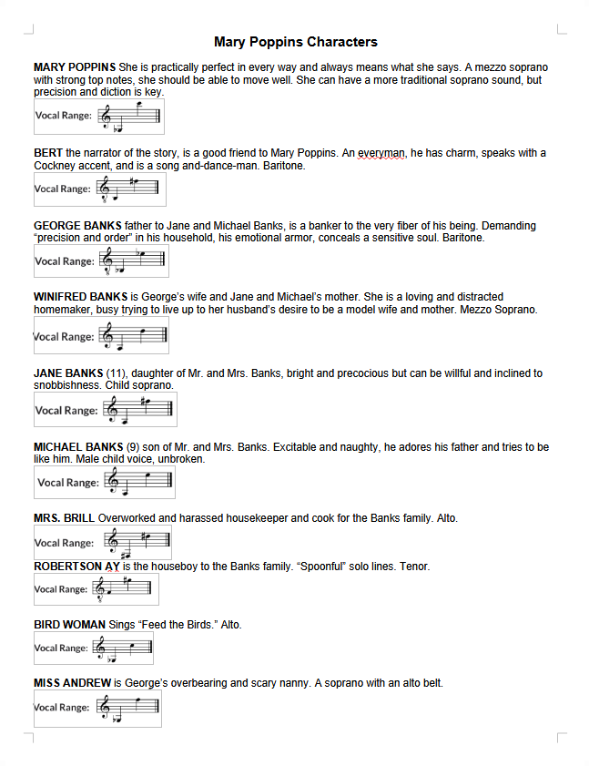 Auditions for CTC's upcoming production of Mary Poppins, directed by Jami Steele Sprankle,